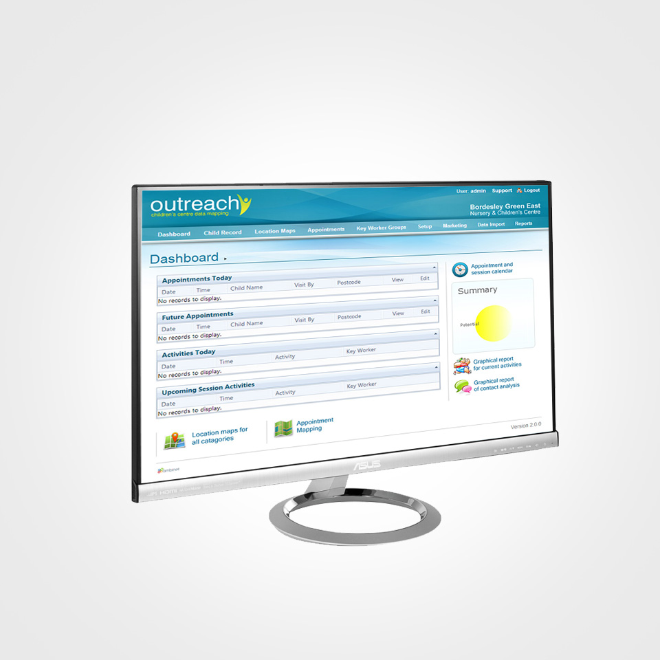 Outreach Live is predominantly used by the centre to visually map locations of children who are or may be potential users of the facilities provided by the Children Centre for more streamlined and effective marketing. It also provides easier management of these activities by keeping notes, appointments and other simple yet essential information about the child.